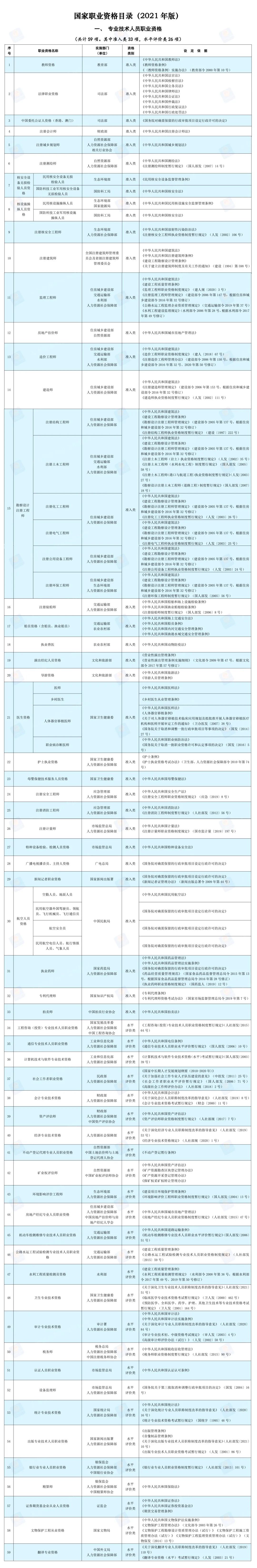 经国务院同意,人力资源社会保障部近日公布了《国家职业资格目录(2021年版)》。
