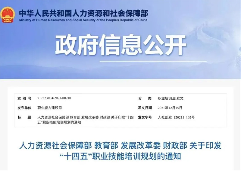 日前,经国务院同意,人力资源社会保障部、教育部、发展改革委、财政部联合印发《“十四五”职业技能培训规划》(以下简称《规划》)。