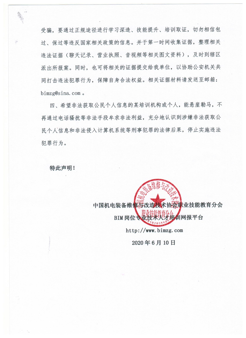 【重要声明】关于某机构或个人非法获取BIM培训项目网报平台学员个人信息的严重声明