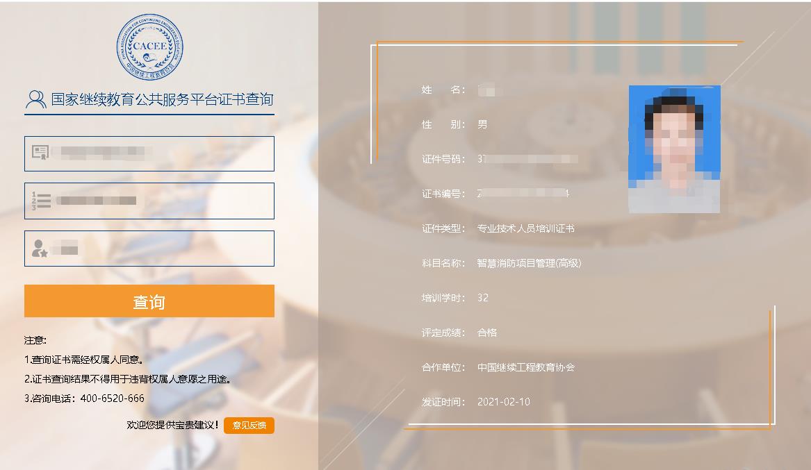 一、证书查询: 证书通过中国继续工程教育协会官网查询。 查询网址http://www.cacee.org.cn 。